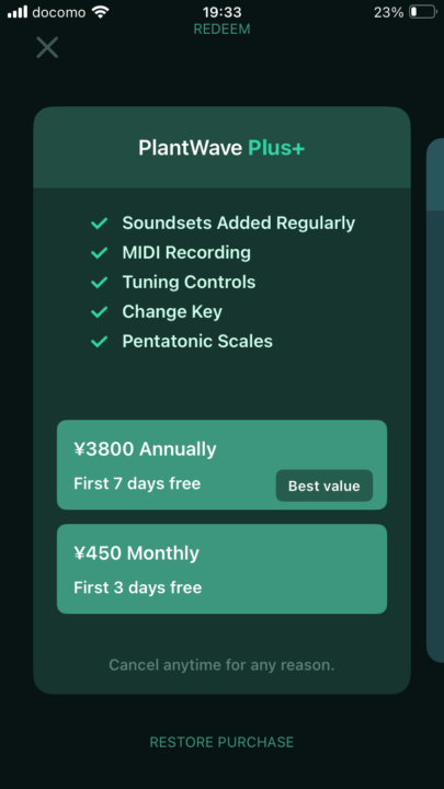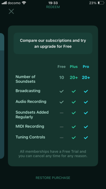 アプリの方では、機能でプランが分かれていて、最初は無料でやってみて、midi出力とかサンプリングとか外部音源と合わせて遊んでみたいと思ったらannunaly(1年4000円)くらいなら、十分元とれそうだからやってみようかなと