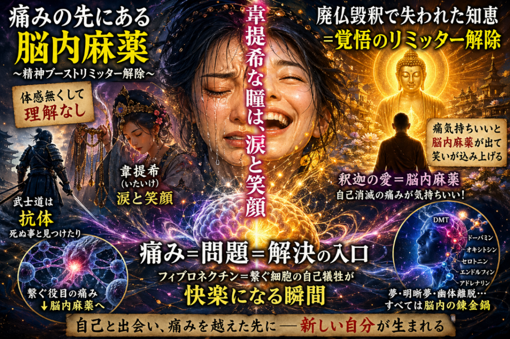 体感無くして理解なし、釈迦の物語に出てくる『韋提希(いたいけ)』、そして語源に残る『いたいけな瞳』、全ては、廃仏毀釈で失われた精神ブーストリミッター解除の脳内麻薬分泌のお話と気づく