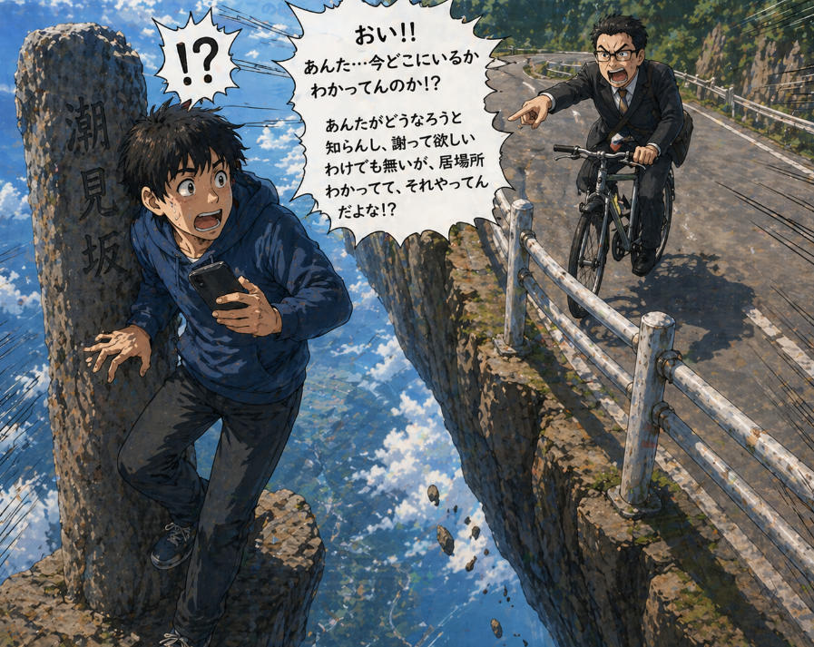 「普通の場所だと思ってたら崖だった」